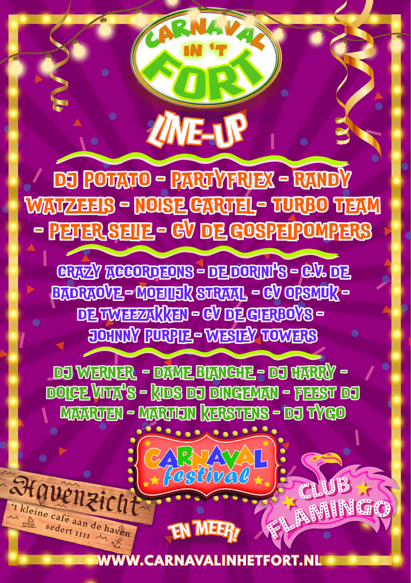 Ontdek onze website en klik op onderstaande link voor de line-up van Carnaval In Het Fort!